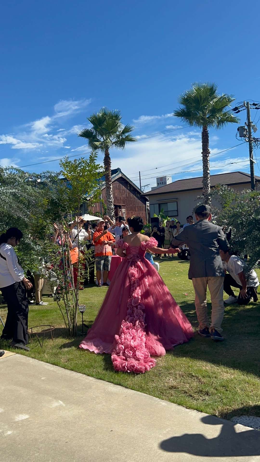 旦那様はアロハシャツで、奥様はピンクのカラードレスで登場♡