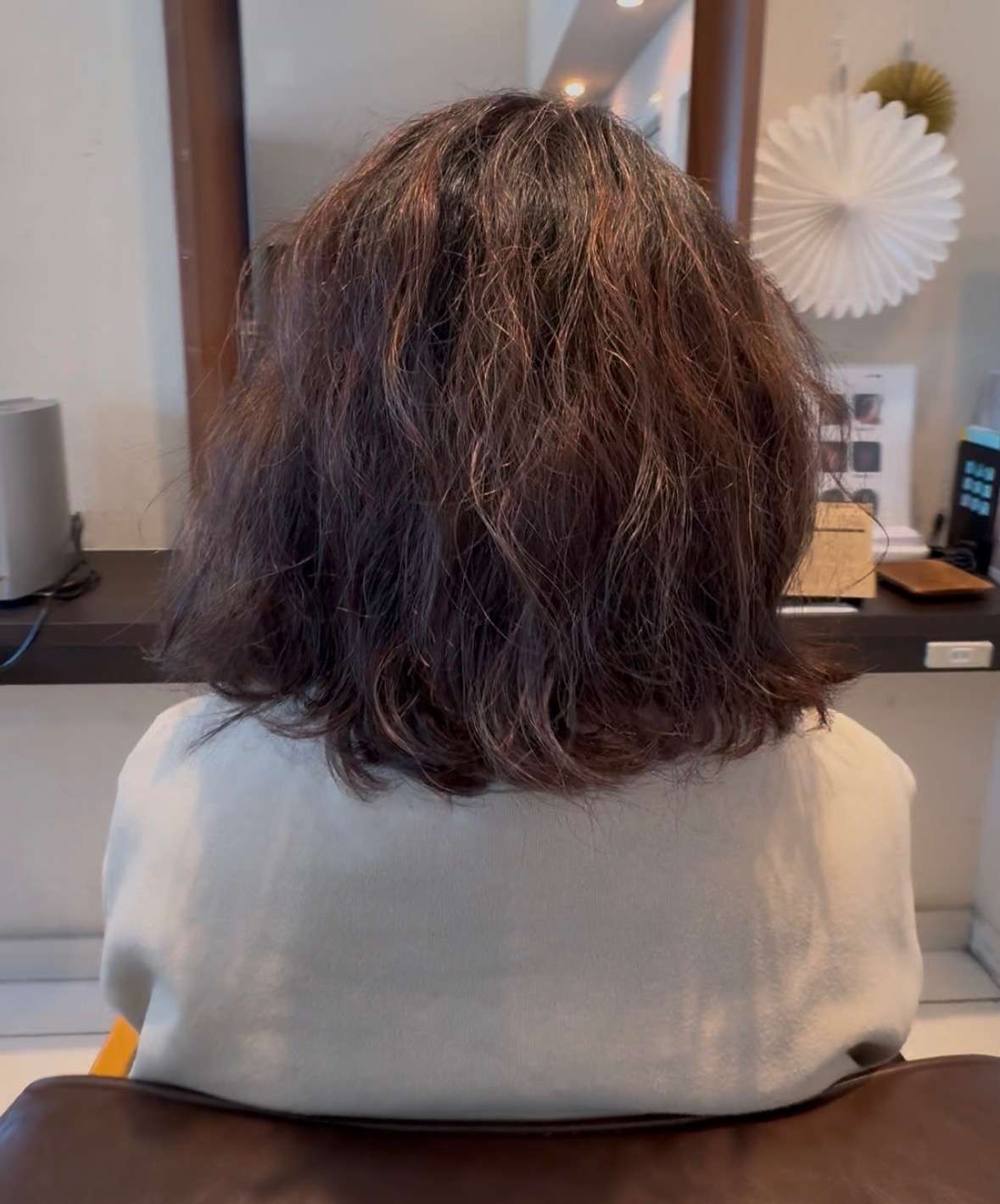 そこで今回は、オゾンパーマで髪と頭皮の状態を整えながら、動きとまとまりを出す施術を行いました。