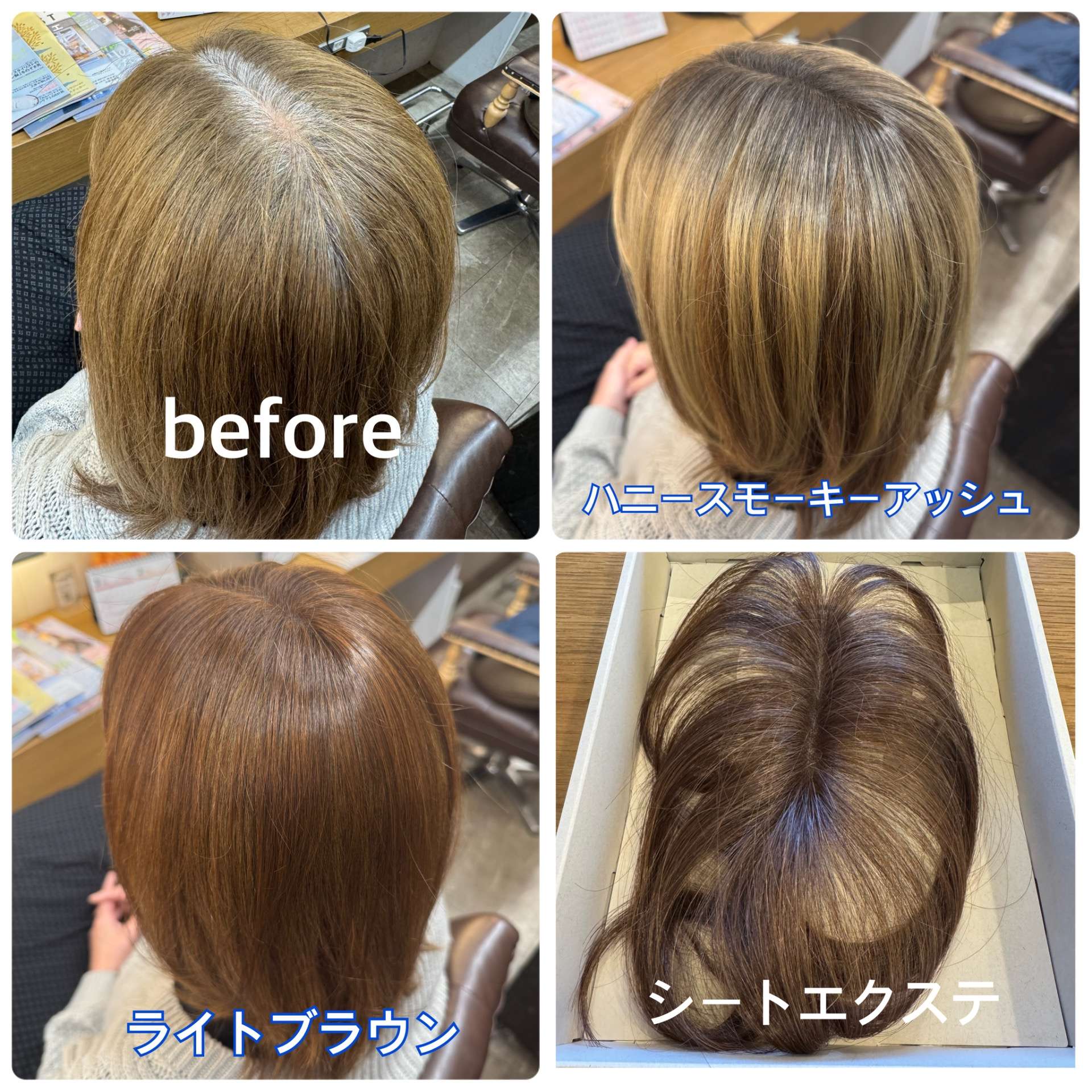 こんにちは! オゾンパーマを使い髪の毛や頭皮をいたわりながら、髪質改善、髪質向上ができ、パーマとカラーが同時に施術ができる、東海市の美容院、美容室・カナリアの柴田です。 ハイライト×良草カラー…